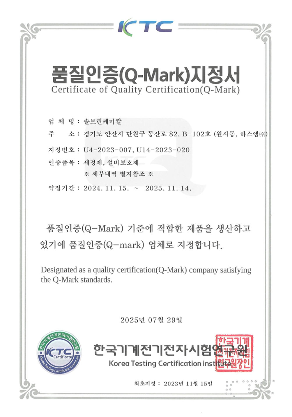 > 회사소개 > 인증서